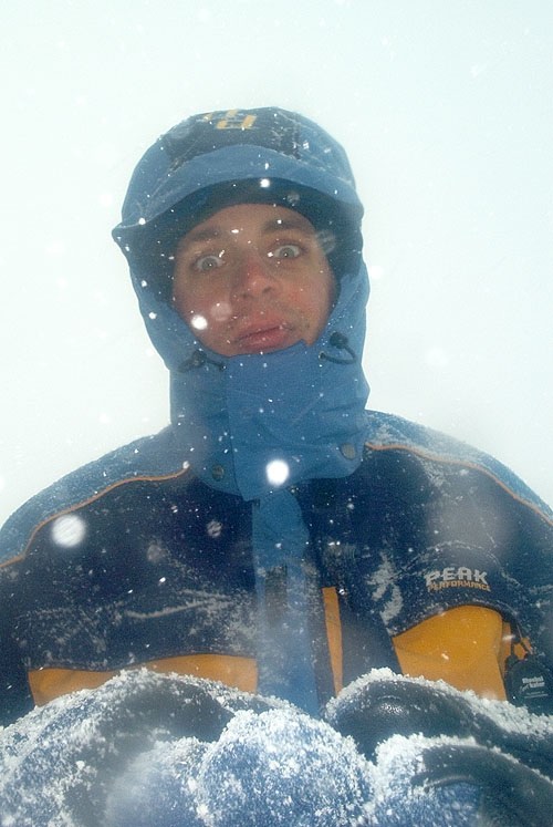 Die altbekannte "Peak Performance"-Joppe ist immer mit dabei (man beachte den überaus neckischen Kapuzenüberhang- ein erhebender Anblick voller poetischer Momente -NOT.